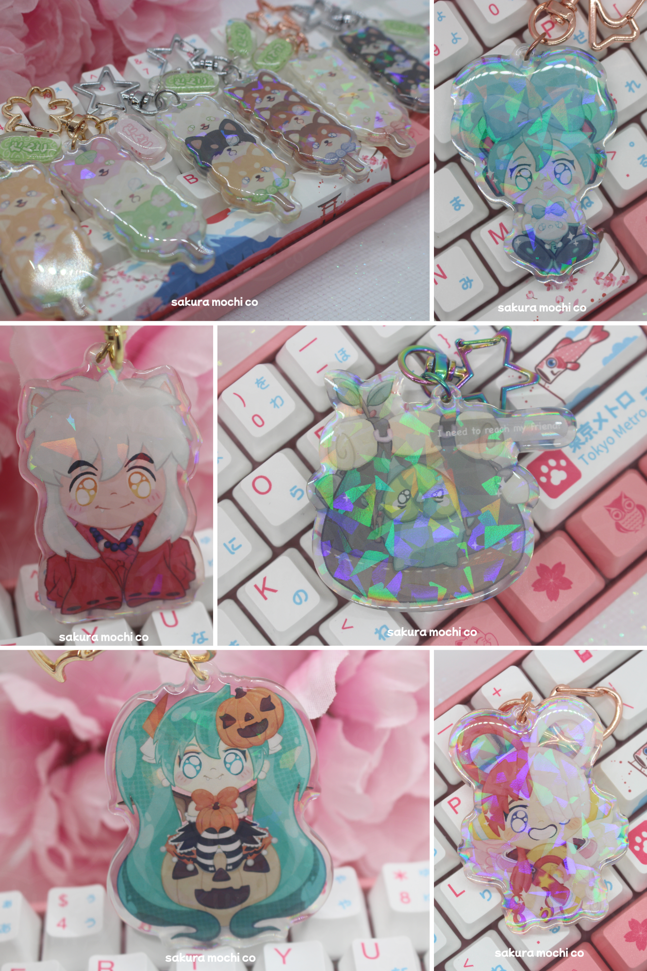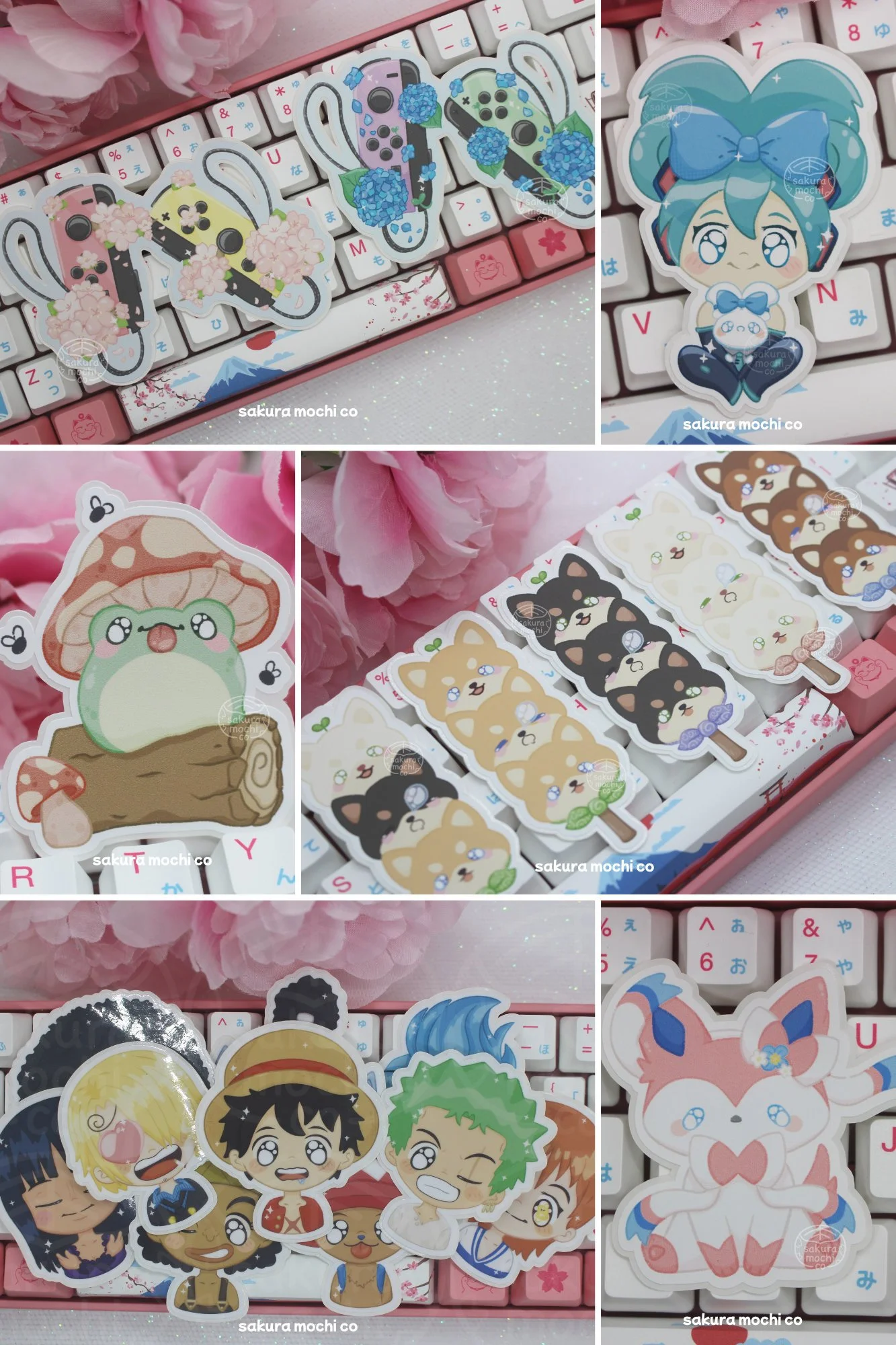 hi! below are examples of products i sell and table setups i’ve had for previous events. sakura mochi co started its online journey in 2022, artist market journey in fall 2023 and participated in its first con in june 2024~